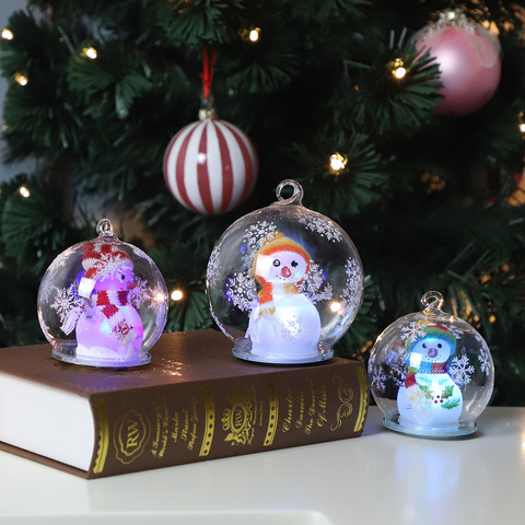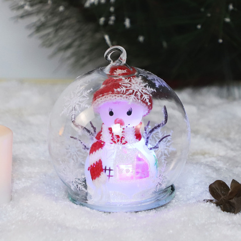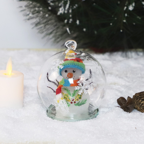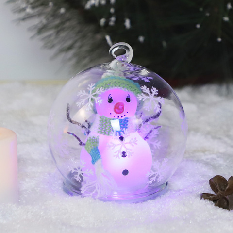 吹きガラスクリスマス輝く雪だるまガラス100 mmバウブルLEDオーナメントクリスマスツリーハンギングデコレーション