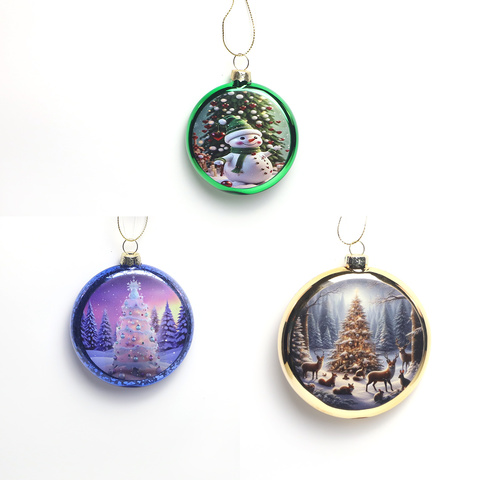 クリスマスボール装飾用オーナメントバルクUV印刷クリスマスガラス吊り下げフラットボールクリスマスボール装飾